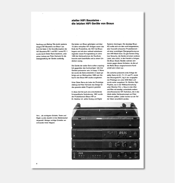 Klatt, J.: atelier HIFI Bausteine – die letzten HIFI Geräte von Braun. In: Design+Design 55, Hamburg März-Mai 2001, 4-10