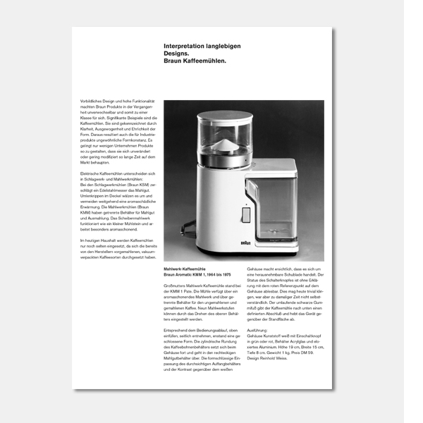 Staeffler, G.: Interpretation langlebigen Designs. Braun Kaffeemühlen. In: Design+Design 67, März-Mai 2004, 3-7